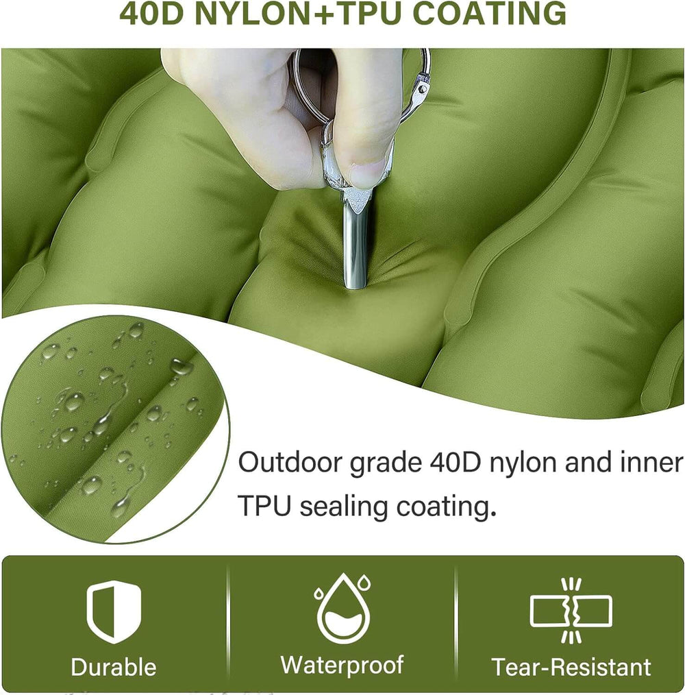 The compression sack features heavy-duty stitching and four reinforced compression straps, designed to withstand repeated tightening and long-term outdoor use.